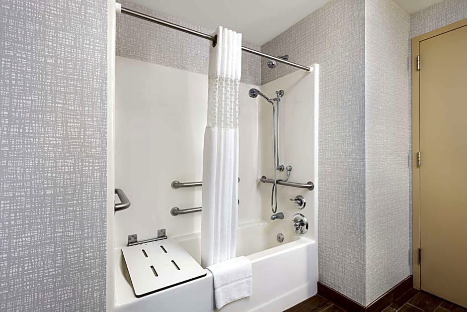 Any corresponding photo may not reflect the specific accessible room type or room feature. This mobility and hearing accessible, nonsmoking room features one king sized bed , and an accessible bath tub. The room also has a visual alarm and notification devices for the doorbell or door knock and incoming phone calls. The room features comfortable soft seating, microwave, refrigerator, a HDTV, and easy to operate alarm clock/radio. The free high speed internet access will help you stay connected while on the road. If you prefer not to work at the desk, you can use the convenient lapdesk instead. You'll also enjoy the convenience of having a coffee maker with tea service and iron/ironing board in your room.